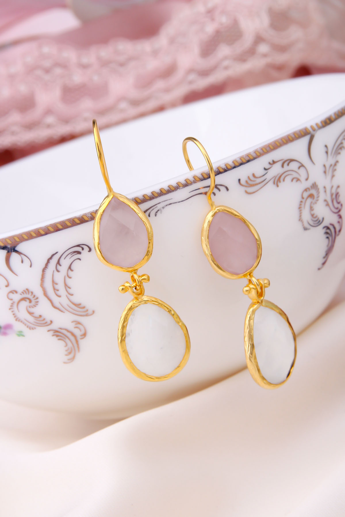 Boucles d’oreilles Quartz Rose & Pierre de Lune