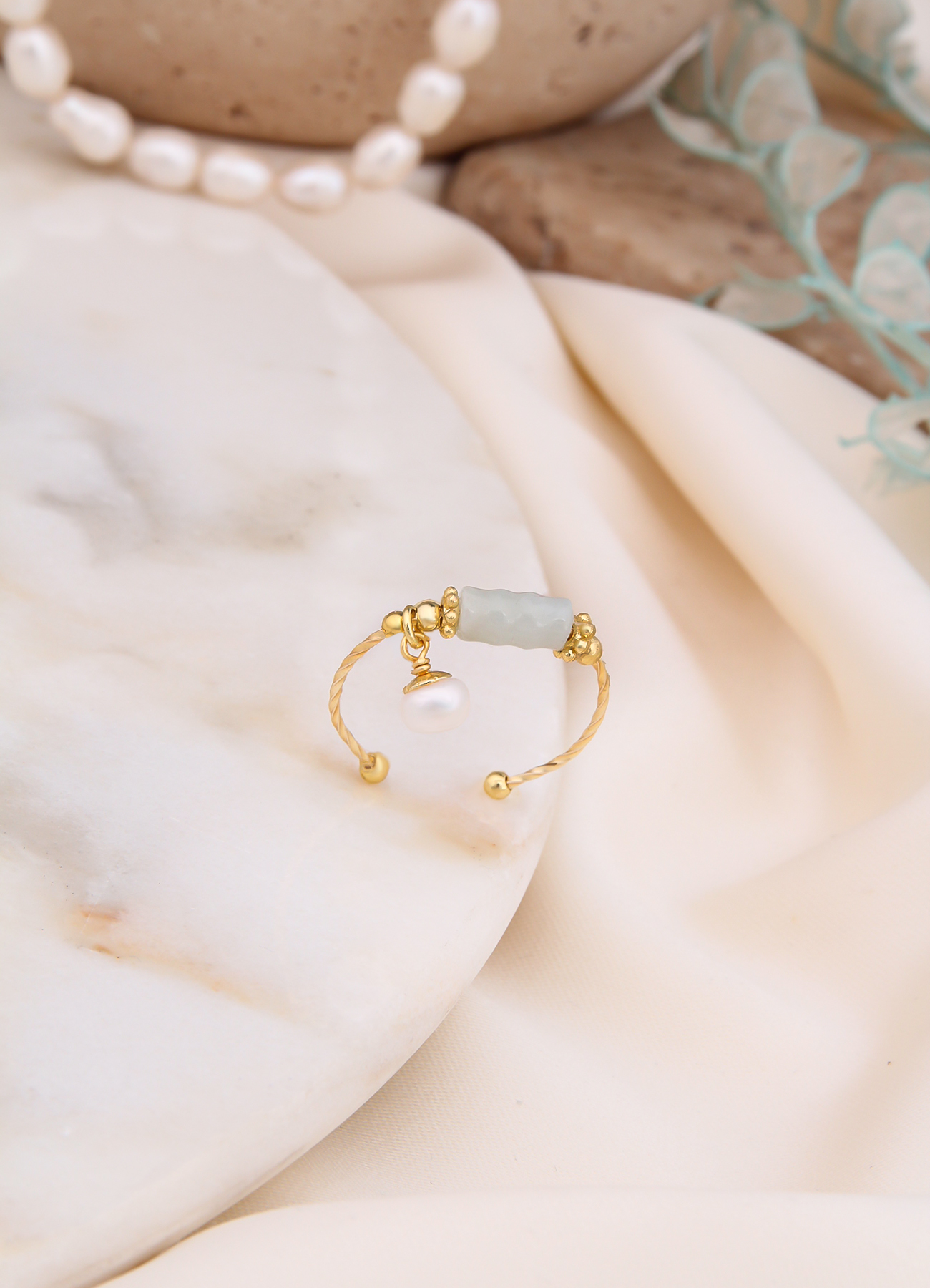 Pierre De Jade Labradorite & Pearl Ring