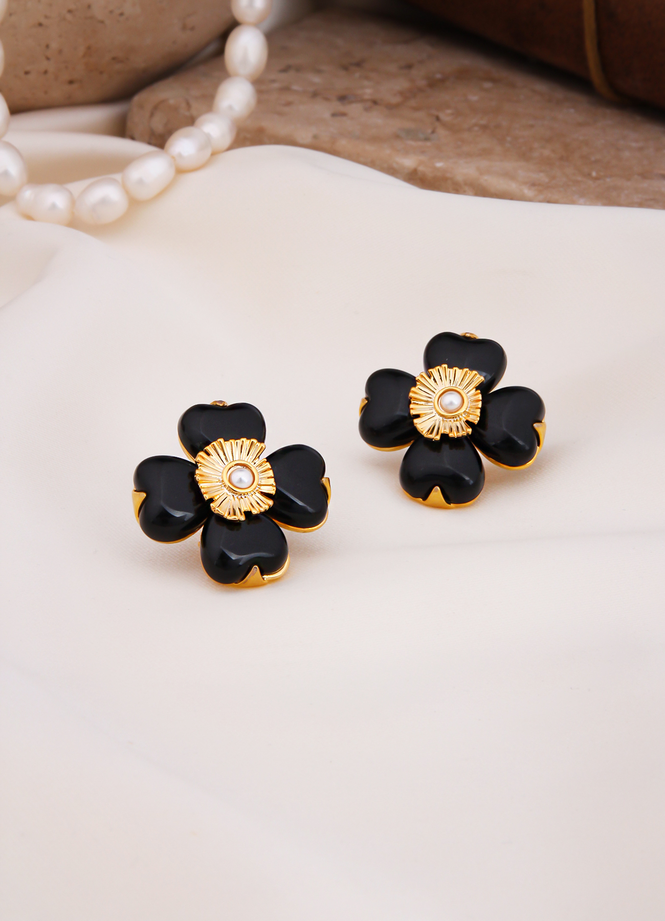 Pierre De Jade Onix & Pearl Earring