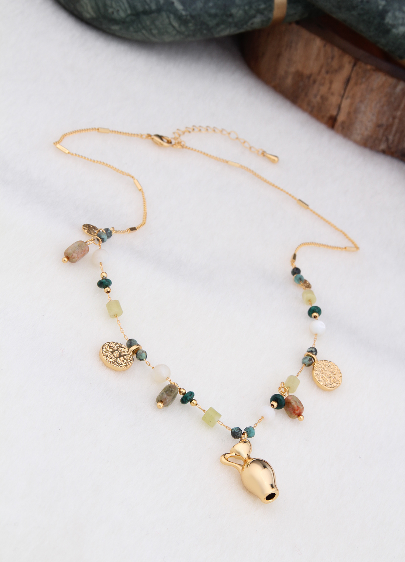 De véritables pierres naturelles sont utilisées dans nos conceptions.