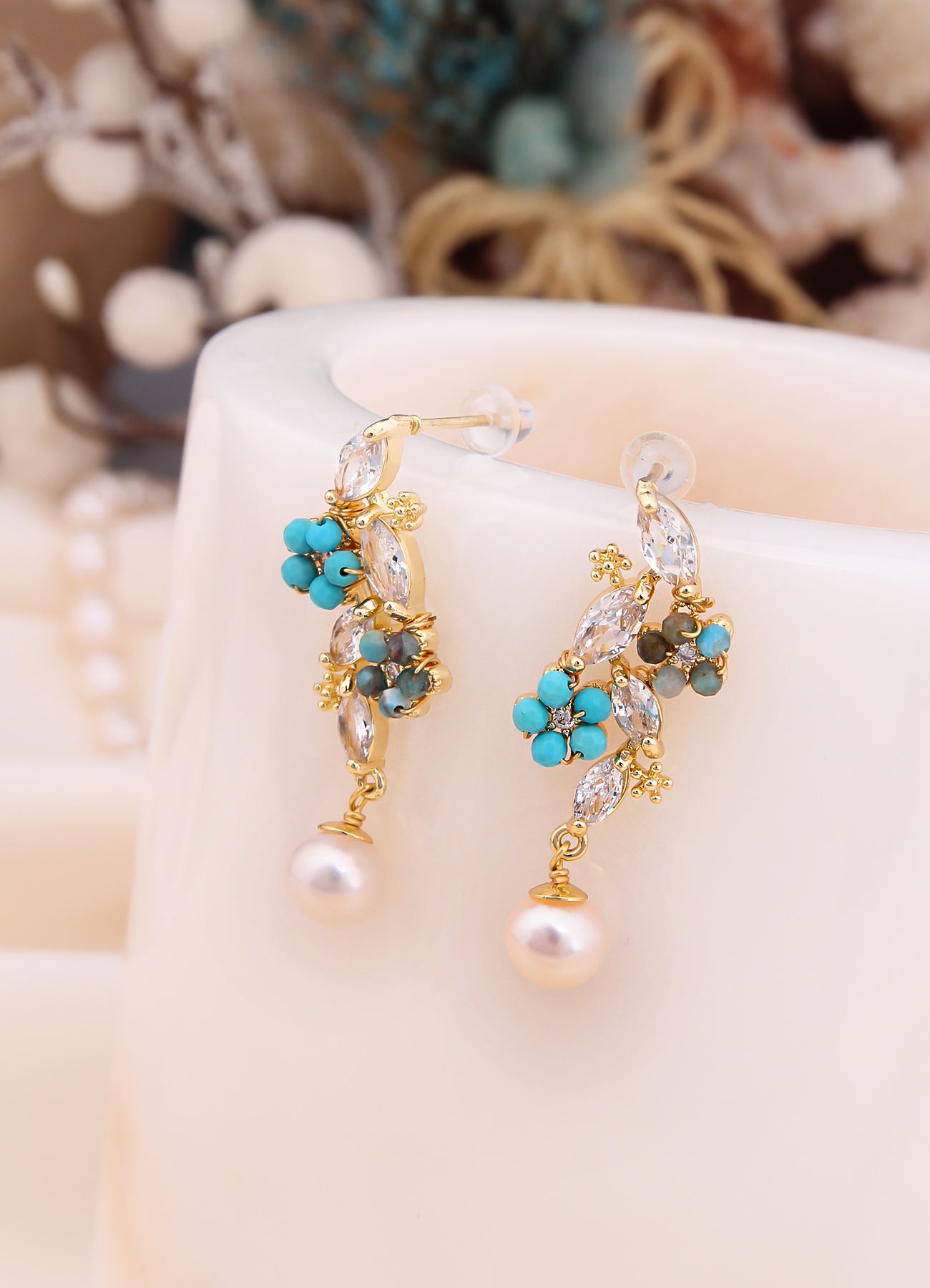 Pierre De Jade Turquoise & Pearl Earring