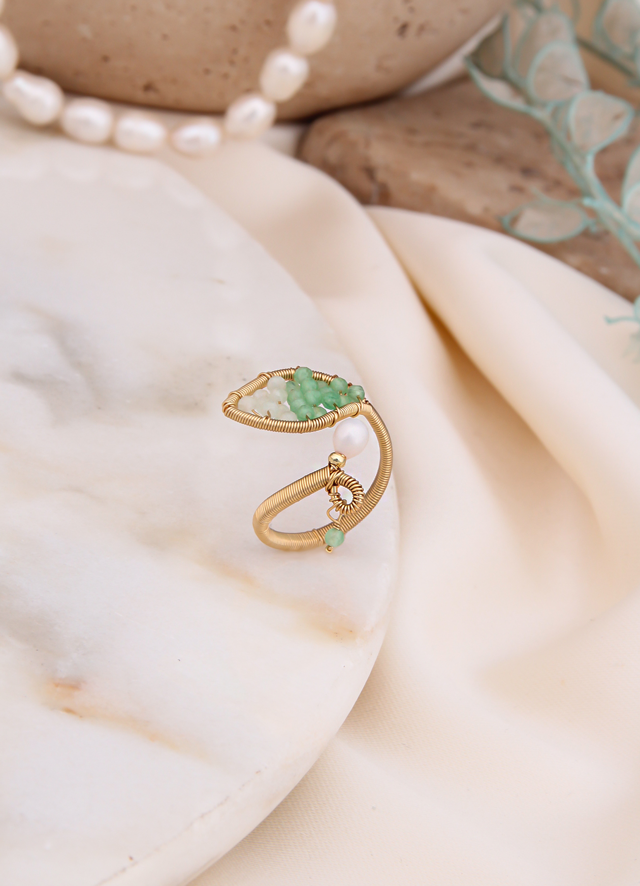 Pierre De Jade Zircon & Pearl Ring